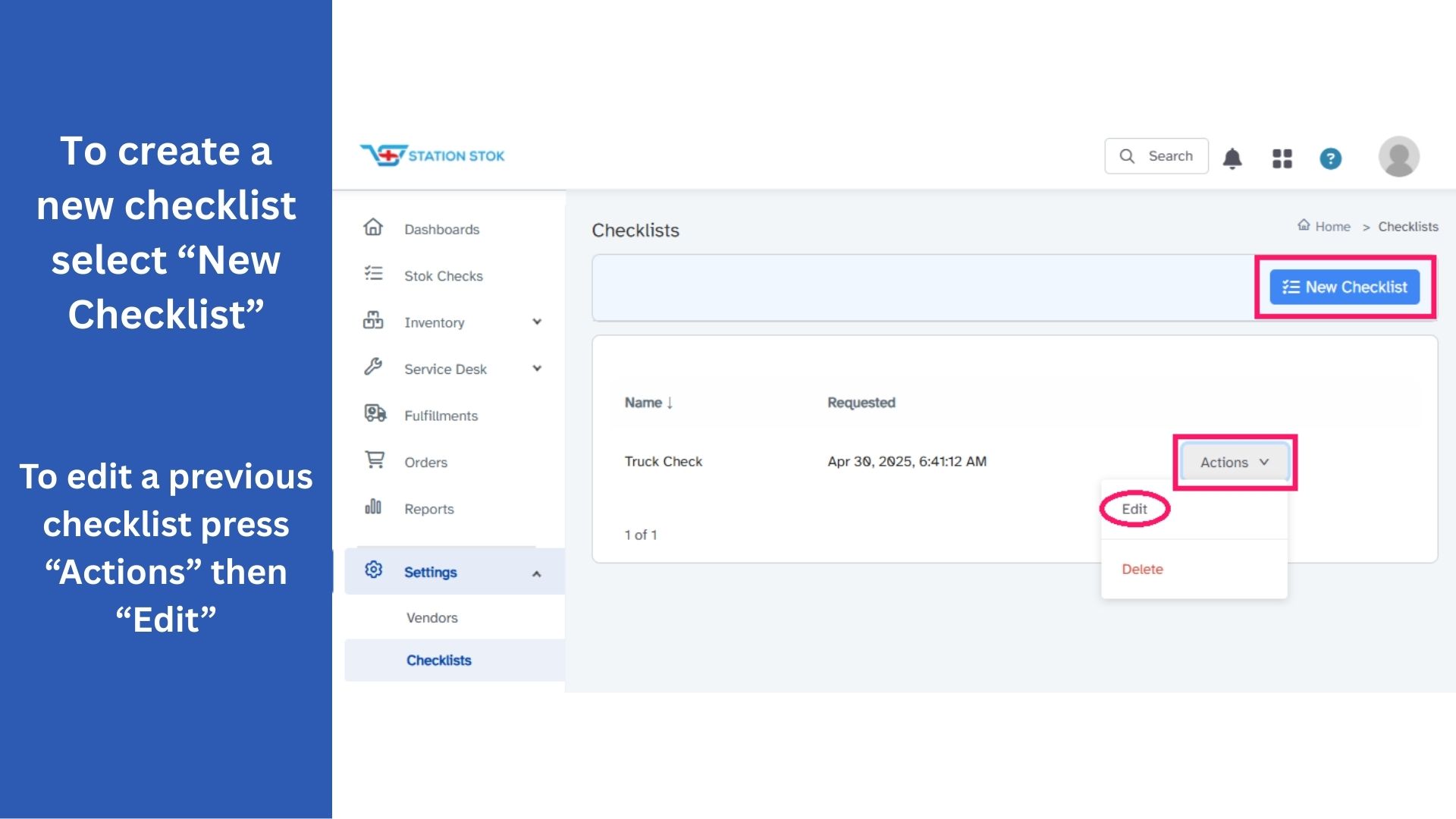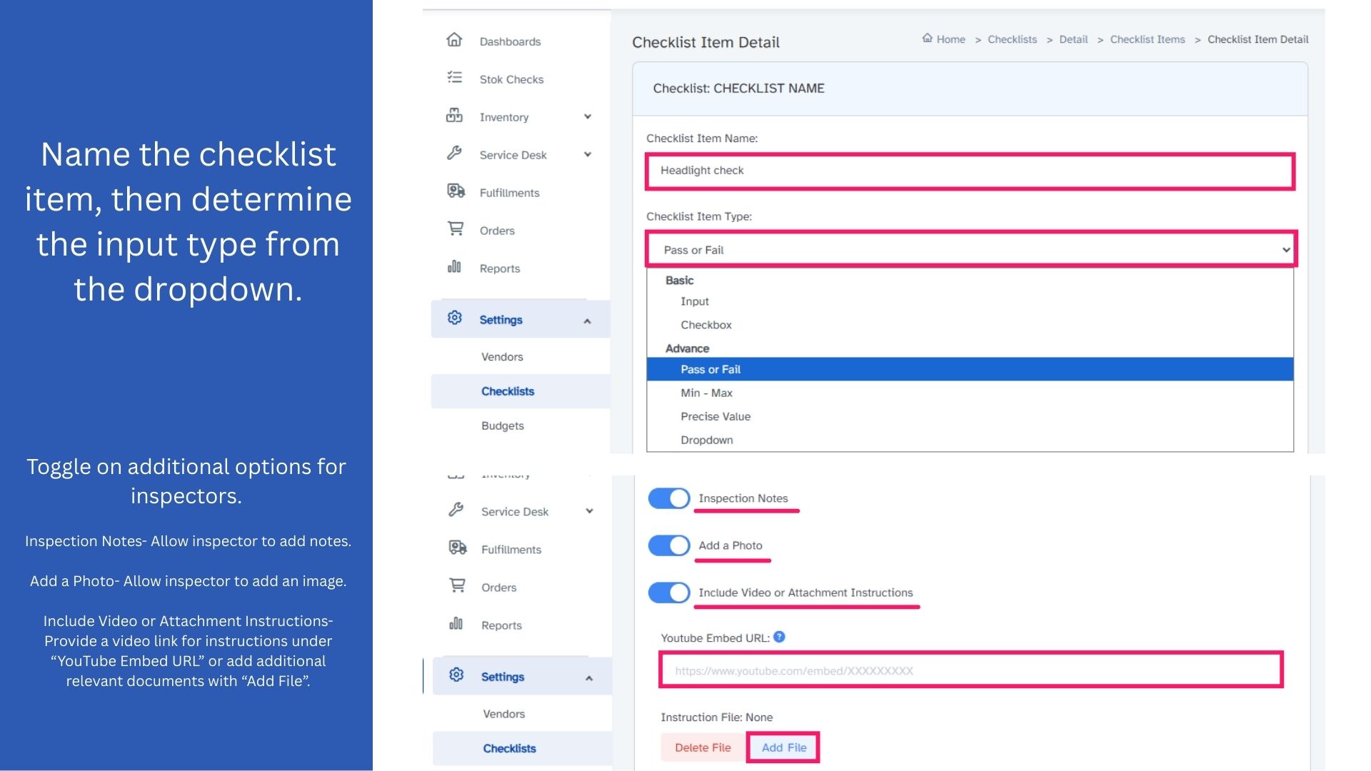 Add / Edit Checklists