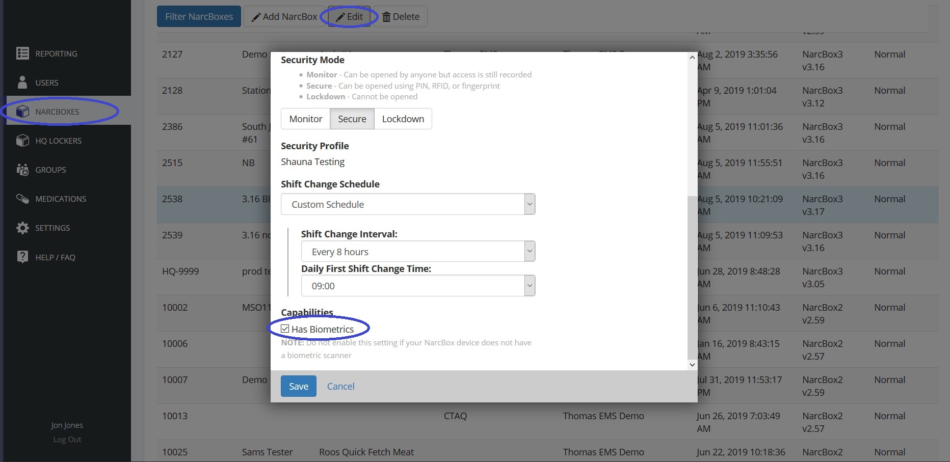 all of your accounts biometric capable NarcBoxes. You will want to make