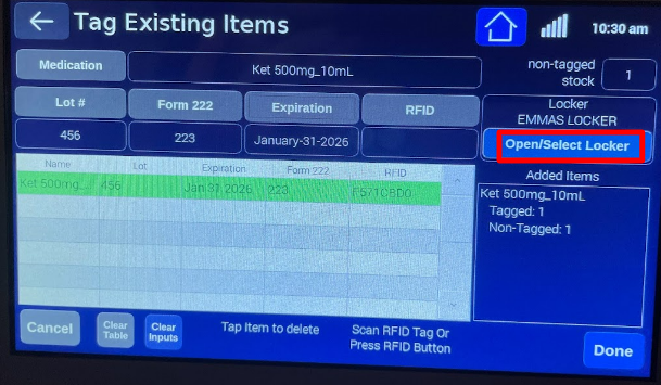 Repeat the last four steps to tag different existing medications (1 locker at a time)
