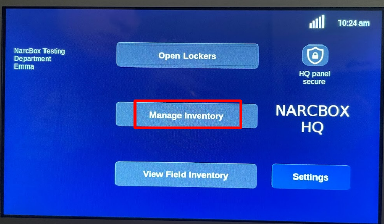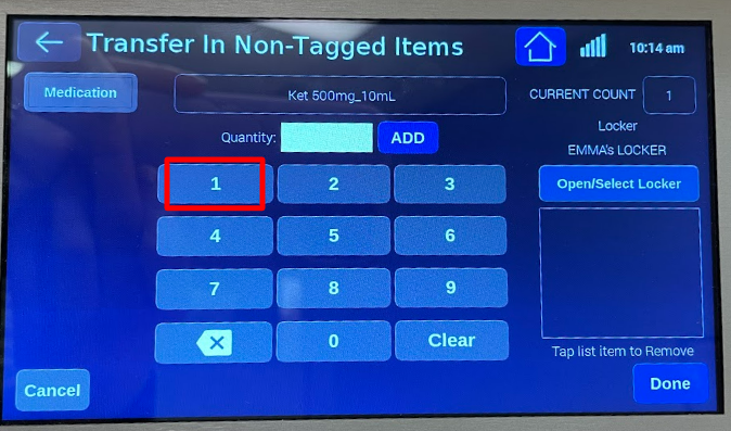Transfer Out Non-Tagged Medications Select ‘Manage Inventory’ Enter User(s) Credentials - PIN/RFID/BIO Select ‘Transfer Out’ “Are you transferring RFID Tagged items out of the HQ” - select ‘No’ If you have multiple lockers, press 'Open/Select ...