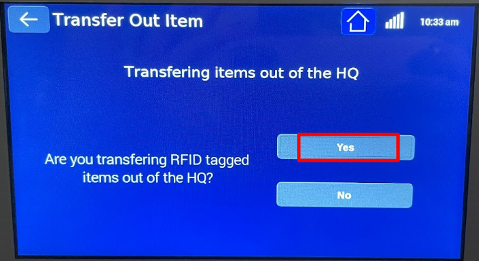 Transfer Out Non-Tagged Medications Select ‘Manage Inventory’ Enter User(s) Credentials - PIN/RFID/BIO Select ‘Transfer Out’ “Are you transferring RFID Tagged items out of the HQ” - select ‘No’ If you have multiple lockers, press 'Open/Select ...
